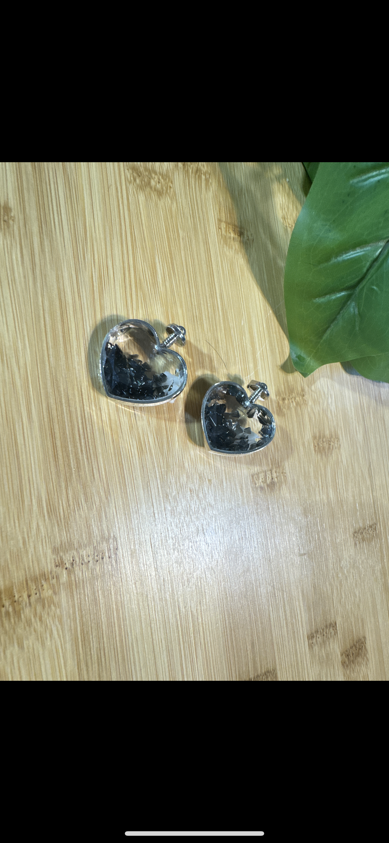 Scatter of natural Smoky Quartz chips embedded within the heart, adding depth and sparkle