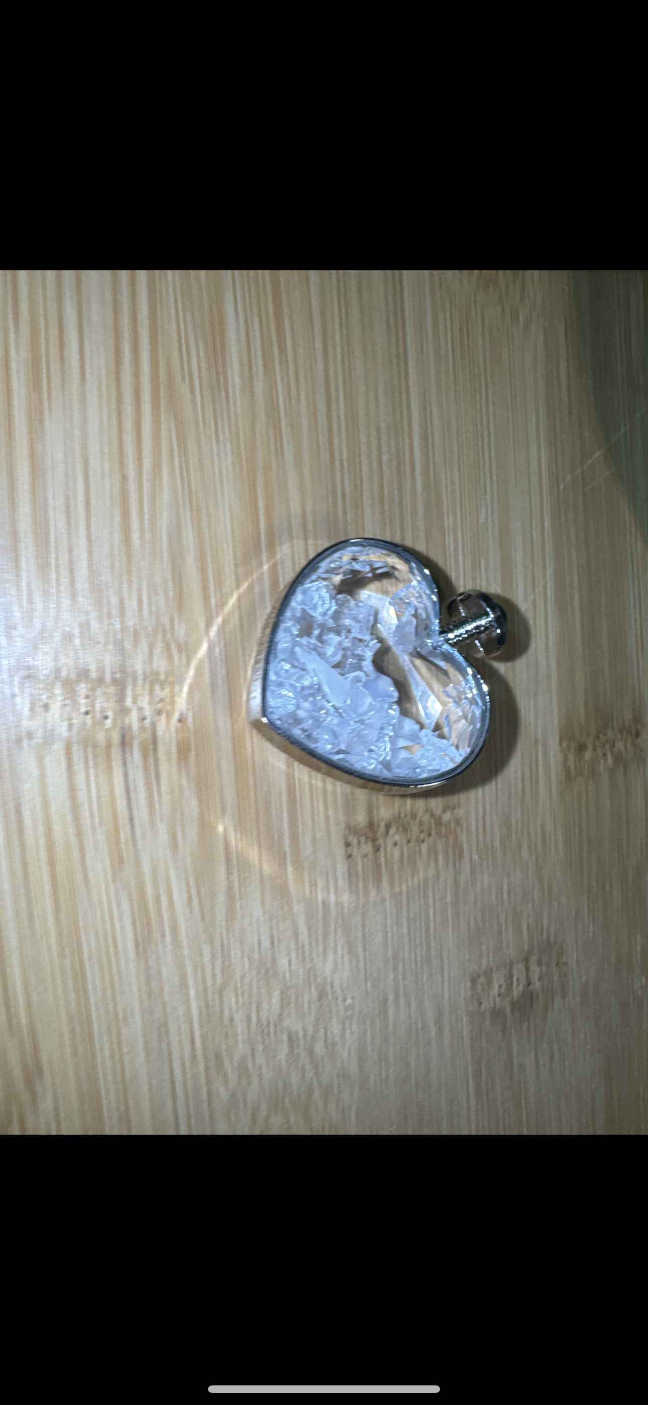 Beveled Glass Heart Pendant with Clear Quartz Chips