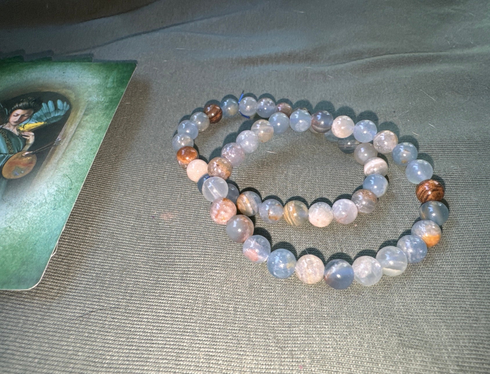 Blue Onyx is a stone of the throat chakra that opens your communicative skills to not only yourself but also the world around you. This veined stone, also known as Blue Onyx, is often used for its ability to bring harmony to a person's mind and soul. It's especially helpful during tough times. The crystal's calming and compassionate energy can offer emotional and spiritual support when you're dealing with life's challenges.