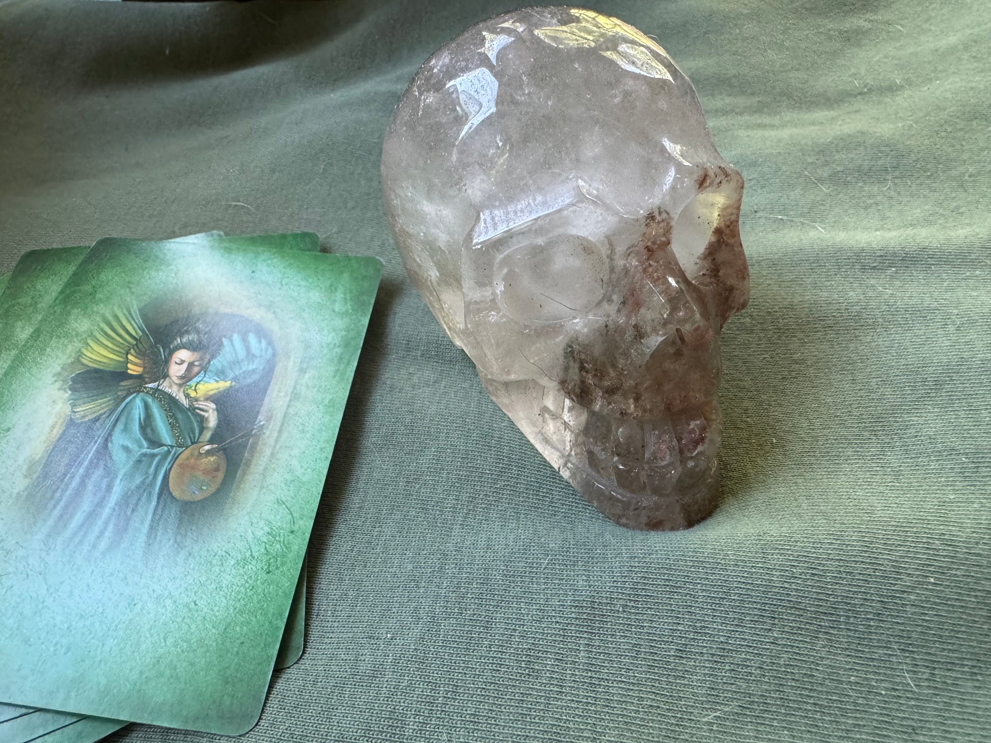 Garden Quartz has healing properties that include attracting angels and energies of forgiveness, peace, tranquility, transformation, and strength. Garden Quartz is also believed to promote harmony, balance, and inner peace, making it an excellent crystal for meditation and mindfulness practices. Skulls can be excellent tools to assist with manifesting energies in our lives.