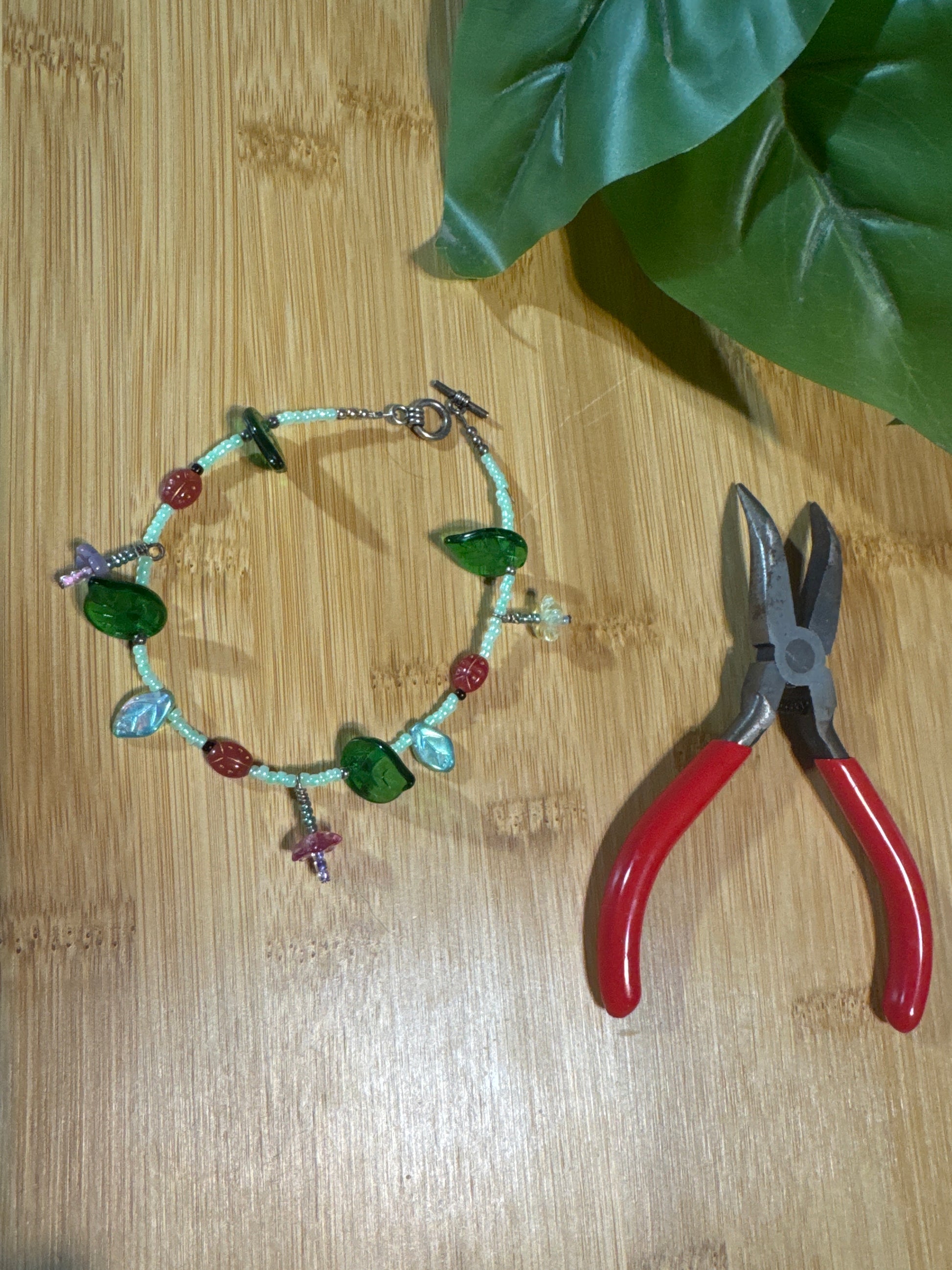 Handmade Lady Bug & Floral Ankle Bracelet