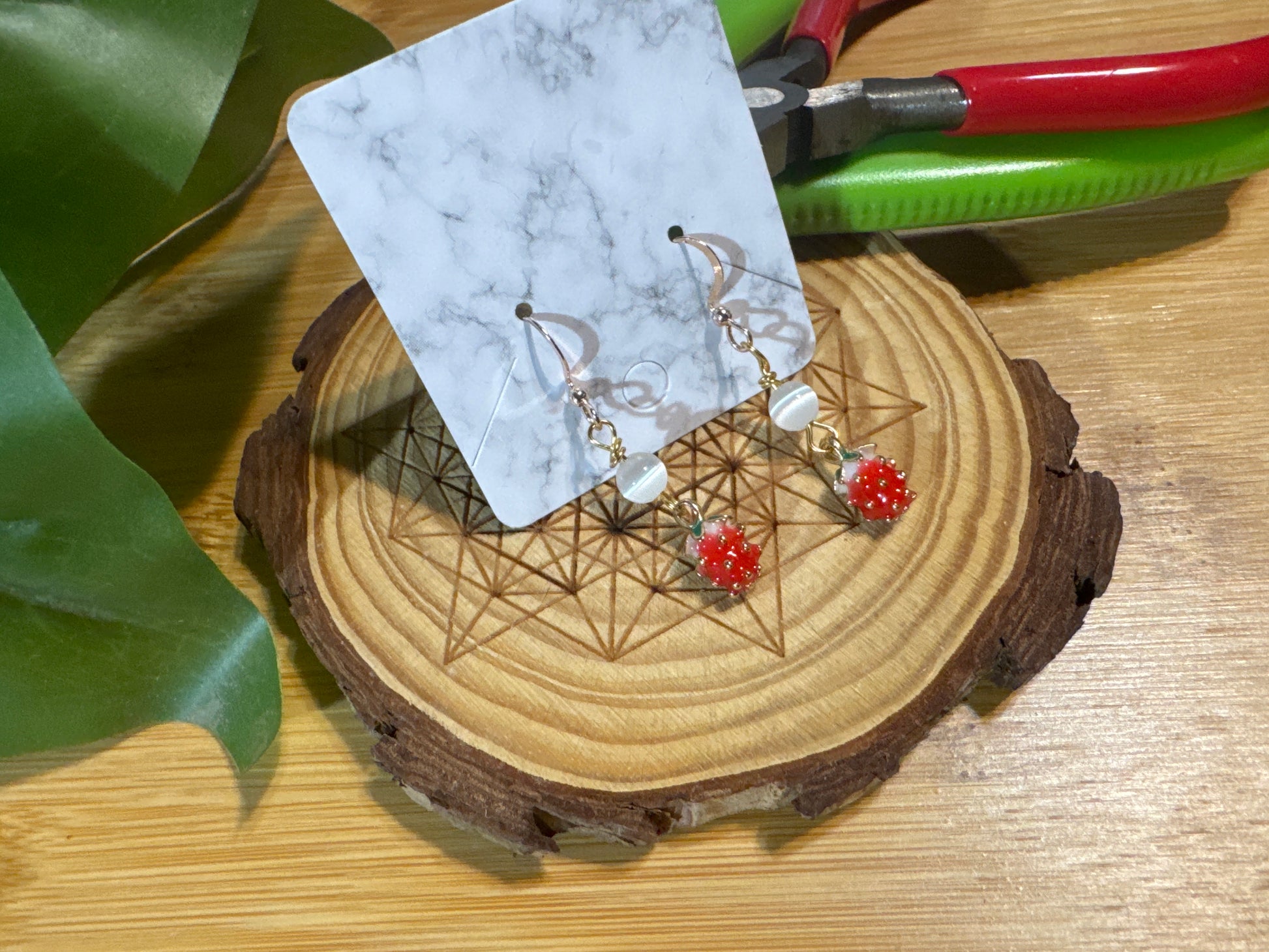 Add a touch of charm and radiant energy to your look with these handmade Selenite and Strawberry earrings, crafted with high-quality 24K gold-plated findings for a luxurious finish. Playful and elegant, these earrings are the perfect accessory for your summer wardrobe, garden parties, or a fun day at a Spring Strawberry Festival.