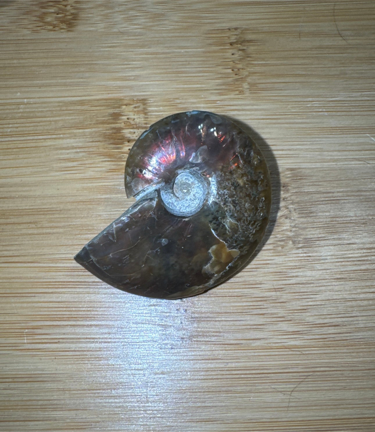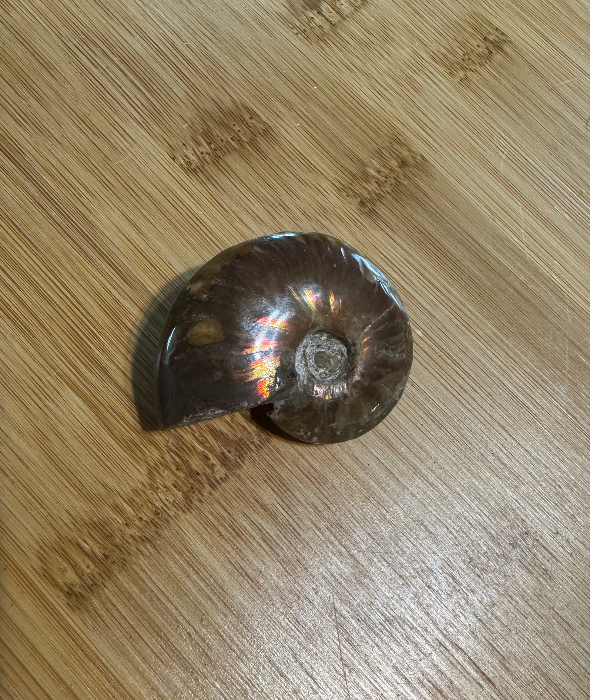 Iridescent Ammonite beautifully naturally opalite. Measuring 44mm x 35mm. With the highly sought after rainbow of opalescent colors.