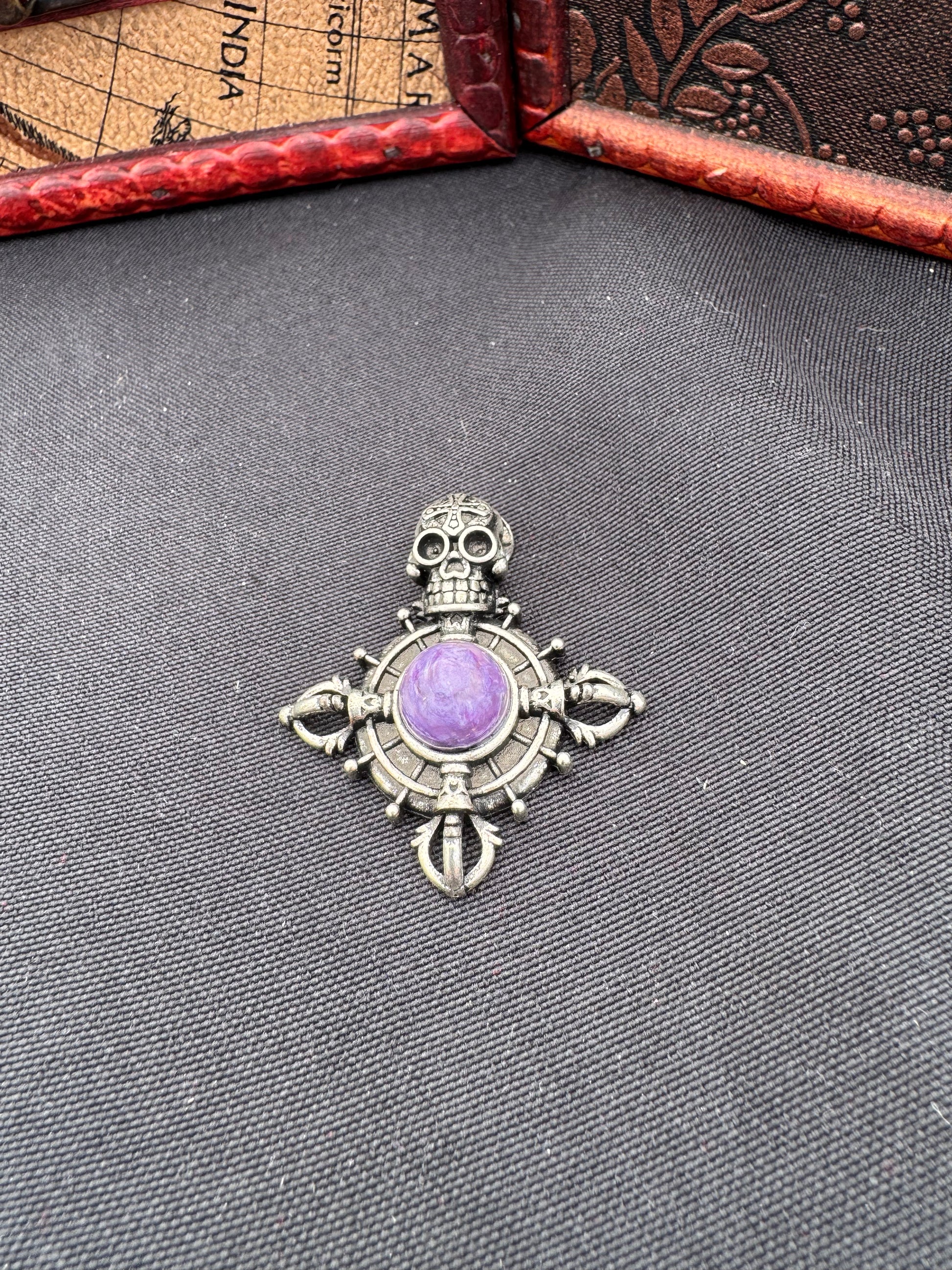 Natural RARE Charoite Skull Pendant – Swirling Beauty, Unique Energy