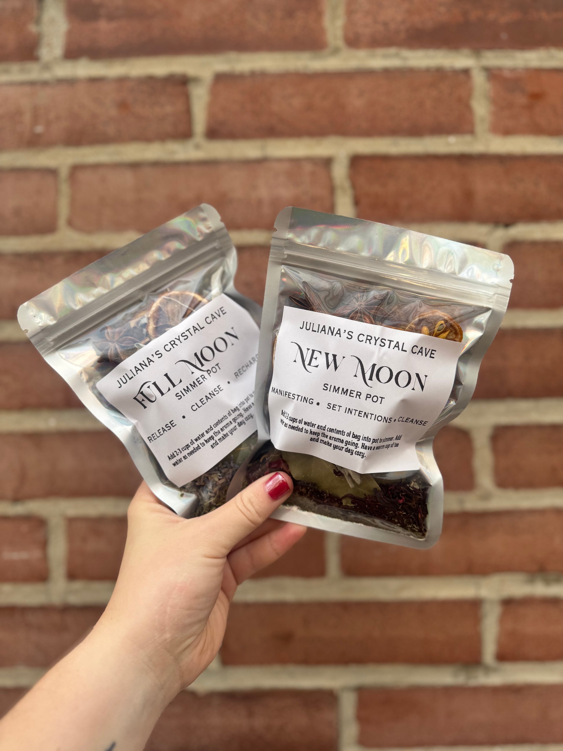 Clear the air and reset your space with our New Moon Cleansing Simmer Pot, a thoughtfully crafted blend of citrus and sage designed to refresh your home and support intentional living. This simmer pot offers a gentle, flame-free alternative to traditional cleansing rituals while filling your space with a clean, comforting aroma.