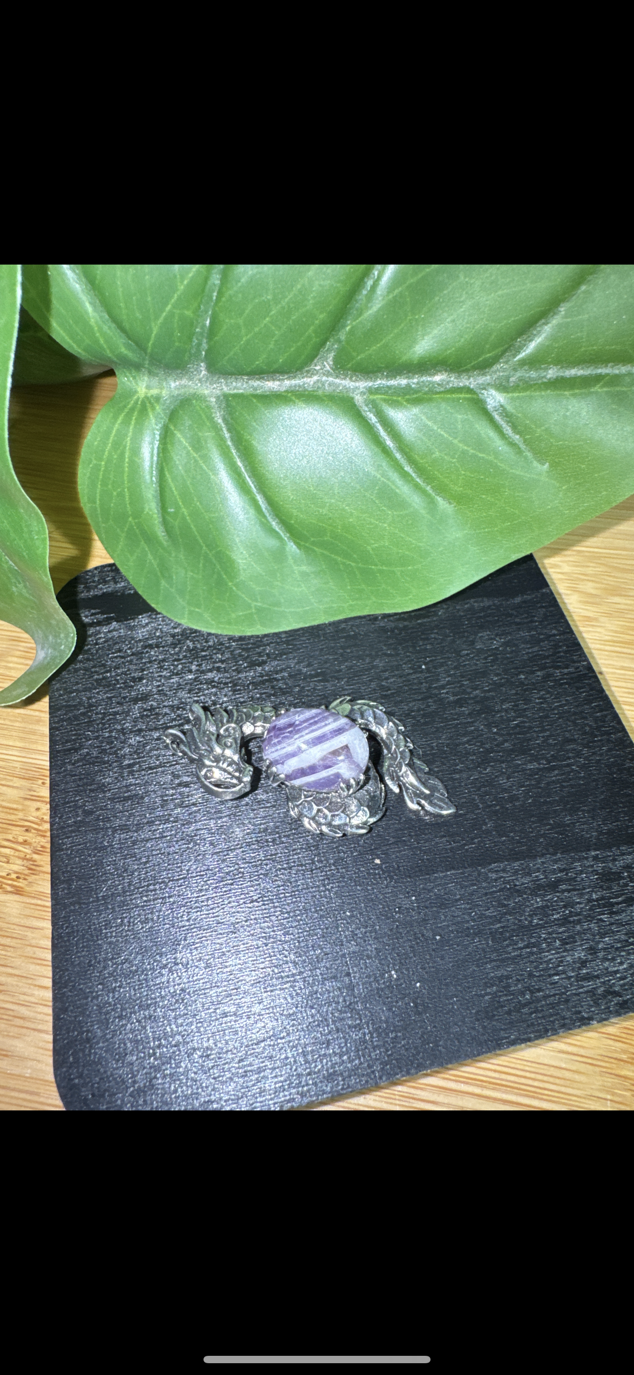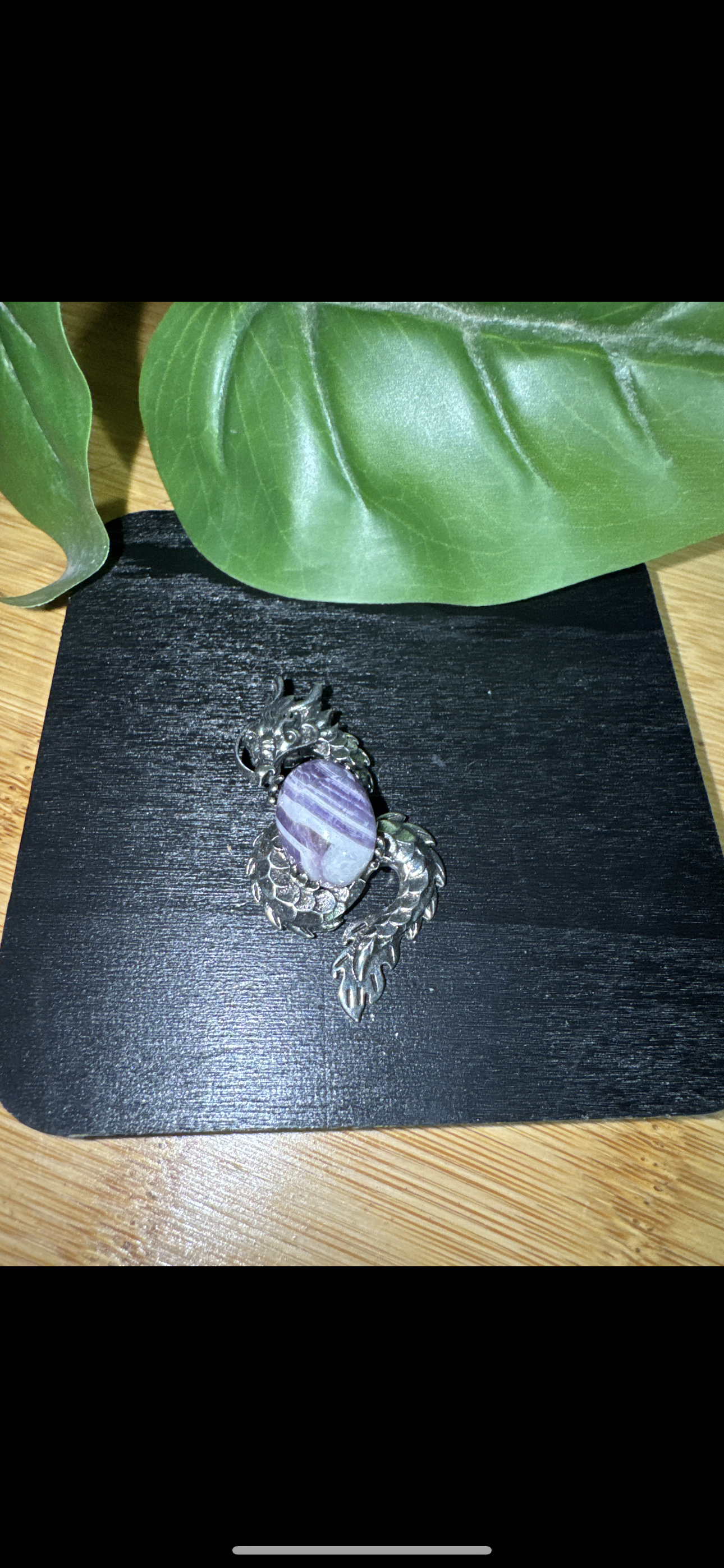 Channel the majesty of medieval lore and the clarity of your dreams with this exquisitely crafted dragon pendant, featuring a genuine Dream Amethyst. Whether you’re dressing up for an evening affair or adding a touch of mystique to your everyday look, this talismanic piece will light your path with visionary energy.