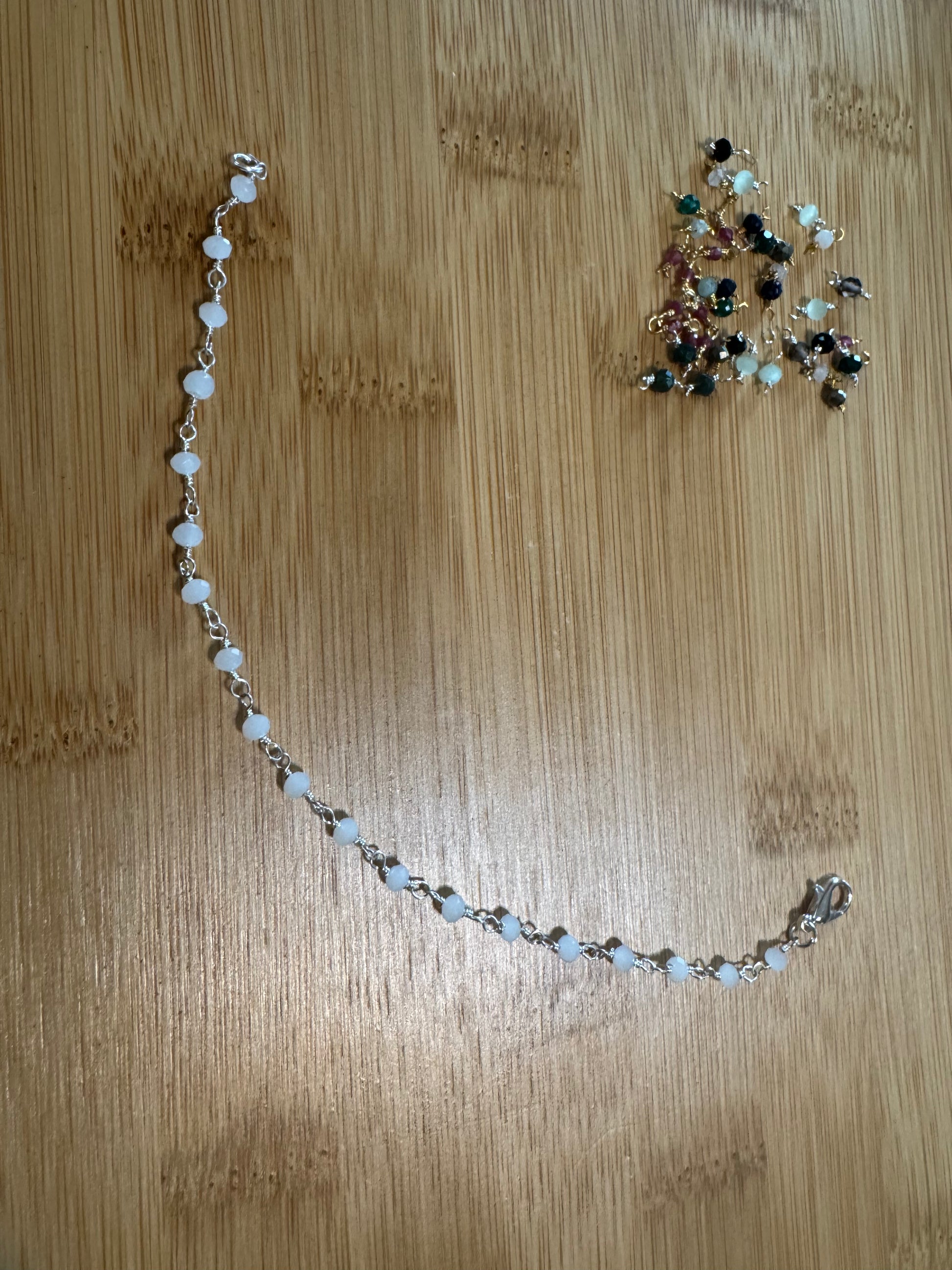 Beautiful and dainty wire-wrapped Milky Quartz bracelet, micro faceted 3.5-4mm beads. Handcrafted in 925 Sterling Silver. lengths available from 6” to 9”. Custom style with adjustable links can be added.